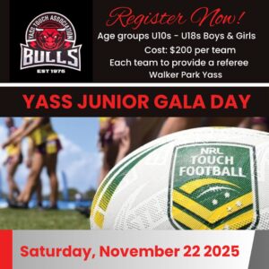 We are excited to invite all affiliates to join us for a full day of touch football on Saturday, 22 November 2025, at Walker Park, Yass.